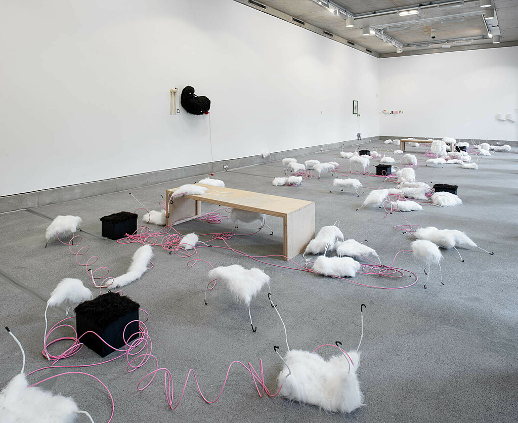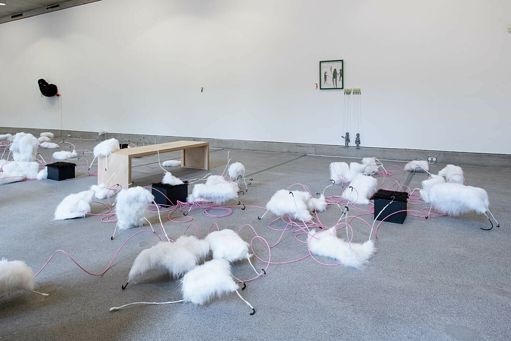 In A New Kind of Animal, he brought an exciting new commission to the Bluecoat, in the form of a host of furry, quivering animatronic sculptures. On display alongside this new commission was an impressive body of Spooner’s work, including over 190 works in collage, painting, sculpture and objects used in performances over the past 15 years. This survey of work served as a blueprint for the new commission; a set of instructions for ‘a new kind of animal’.