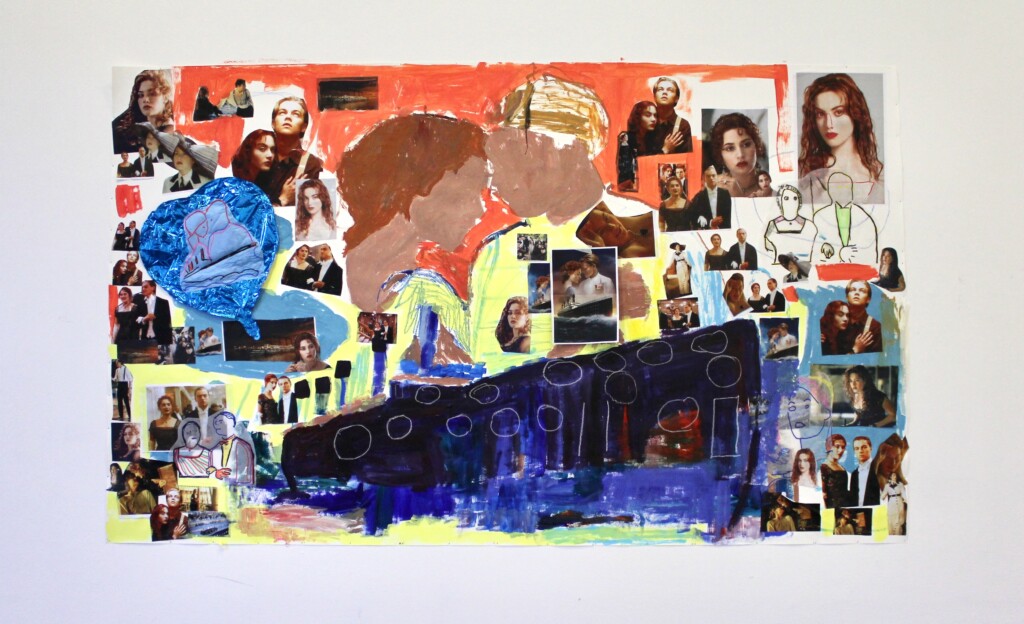 Jane Walsh is a visual artist. Jane creates mixed media artworks that pay homage to their favourite films Titanic and Grease. The films’ main characters are notable subjects in Walsh’s artworks.