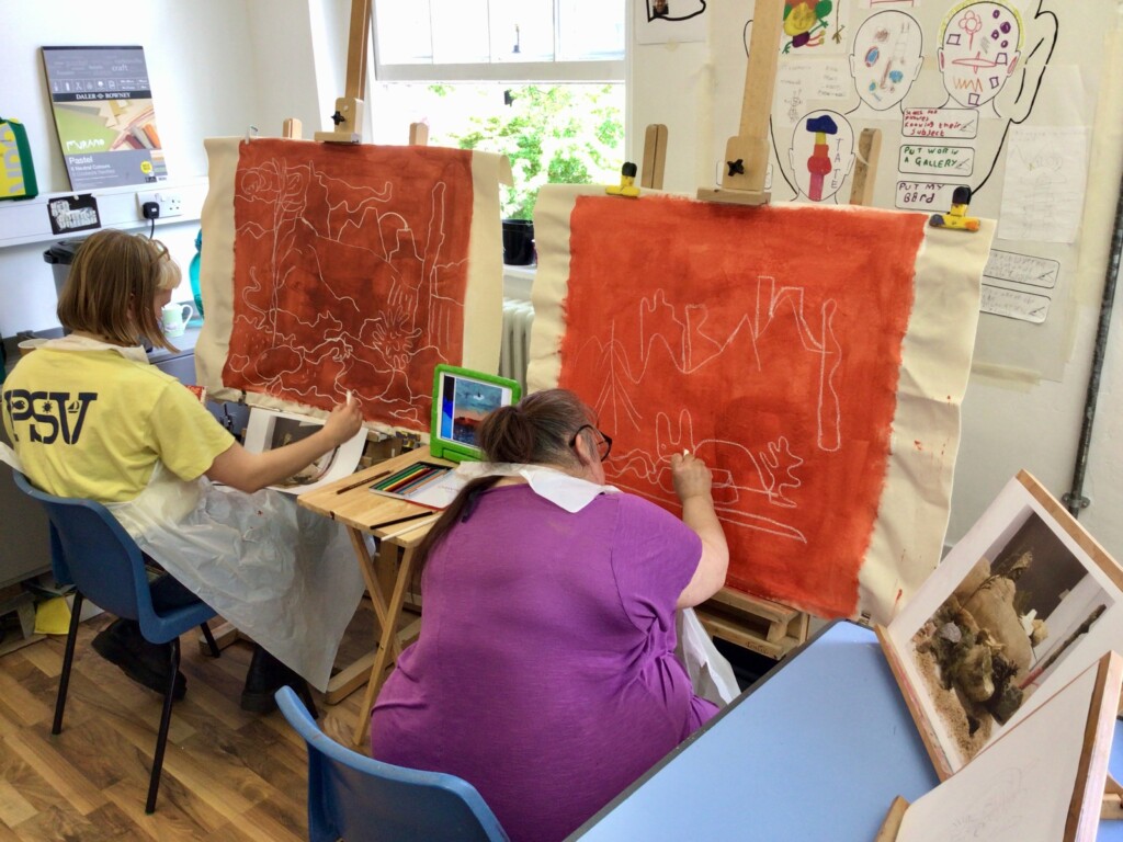 Aquilina is part of Studio Me, Blue Room’s artist development project. Through this Aquilina has received mentoring from freelance artist and architect in-training Georgemma Hunt. Specialising in murals and large canvas paintings, Hunt has supported Aquilina to build upon her painting skills, to create imaginary scenes and narratives and to consider the ‘finishing touches’.