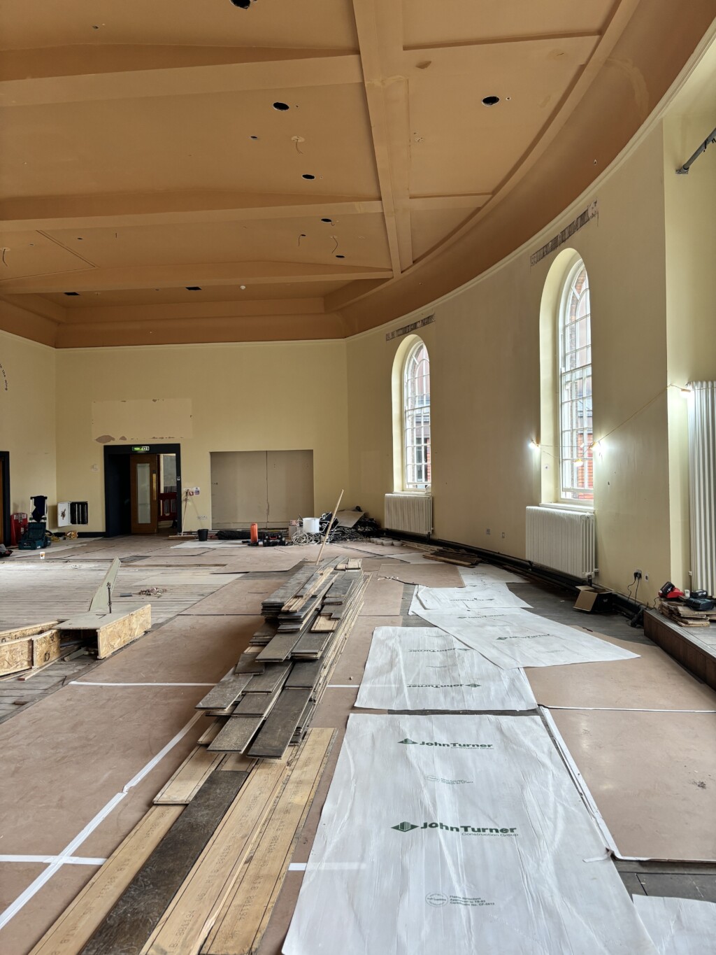 Thanks to a capital investment from Arts Council England, this year we began an exciting project to refurbish and reconfigure our upstairs ‘bistro’ space into a large, publicly-accessible events and performance area, with new sound and lighting systems. This redevelopment will bring the space back to its former glory as a multi-purpose space for a variety of events. The space has been through many transformations over the 300 years, from school Chapel to artist studio and performance space. Read about the evolution of the Bistro space here.