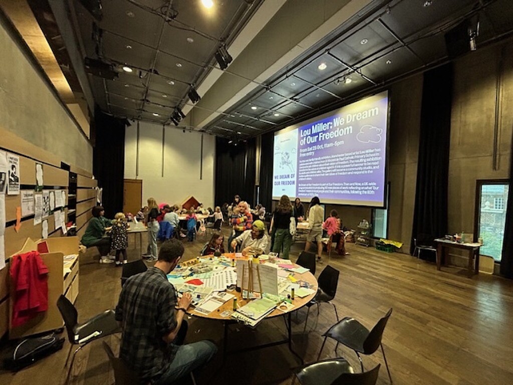 The Bluecoat was one of 60 UK-based venues to take part in Our Freedom: Then & Now, a programme marking the 80th anniversary of VE Day, led by Future Arts Centres. Participants were asked to create special cultural events, exhibitions and performances inspired by VE Day, freedom, and Simon Armitage’s poem Freedom Road. The Bluecoat worked with artist Lou Miller and children from St Vincent de Paul Catholic Primary School in L1 throughout the summer, resulting in our latest exhibition, We Dream of Our Freedom.