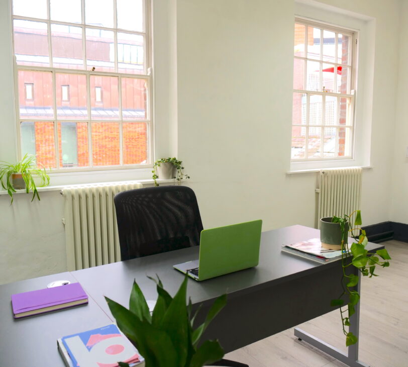 This spacious and bright office is perfect for a small creative business. There is plenty of room for four desks, suited for a four-person team or two organisations of two people.