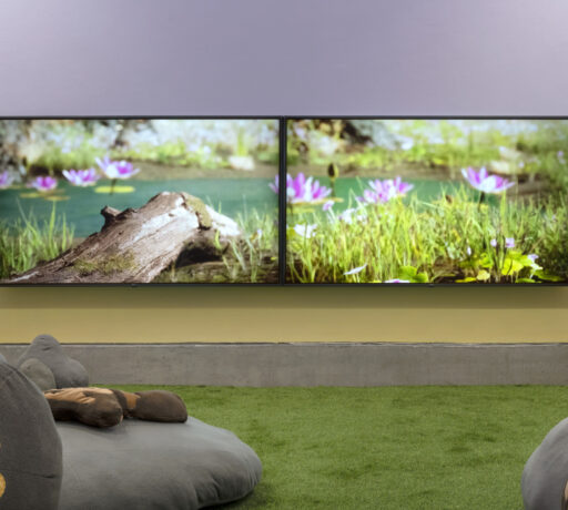 Across Gallery Two, Katie Schwab (London/Glasgow) layered textures, touchable surfaces and sculptures to create two rooms that invite tactile engagement and learning through play for all ages.