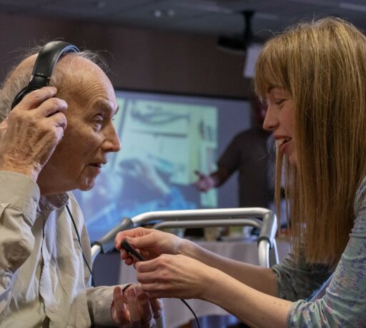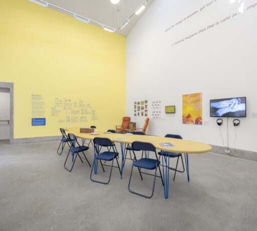 Prestidge worked with Belong residents in a series of dance workshops, encouraging them to express themselves through movement. You can watch footage from these sessions in a film on display in the gallery, made in collaboration with her partner the composer & turntablist Philip Jeck (1952-2022). As people living with dementia can be shocked to see themselves, the footage you see focuses on the hands of the residents instead of their faces.