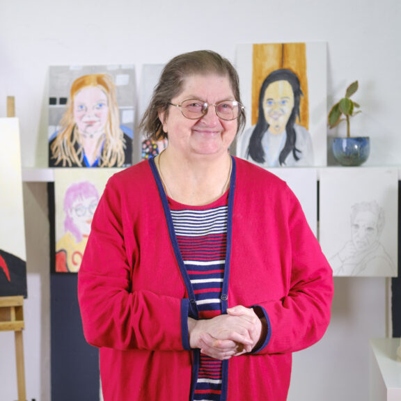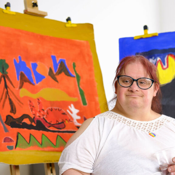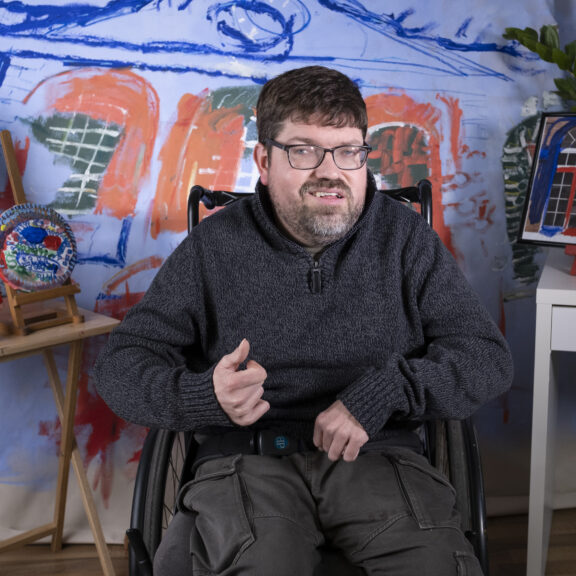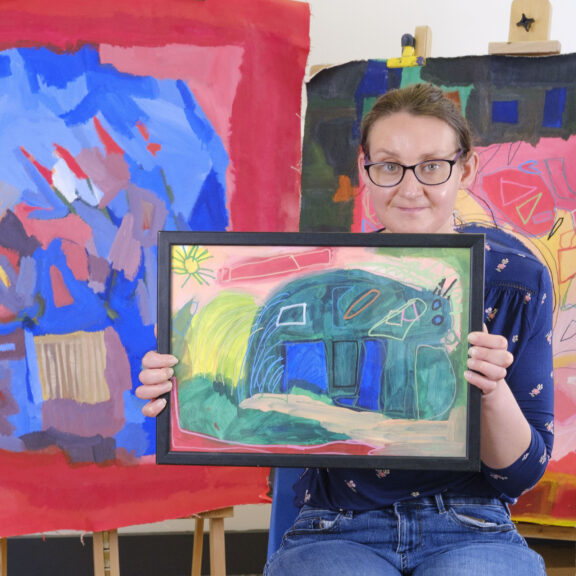 Rooney also received mentoring from painter, sculptor and Shuffle’s artistic director Max Mallender. During Studio Me’s gallery takeover in 2023 Rooney and Mallendar explored collaborative ways to produce 3 large scale paintings depicting the Bluecoat’s facade.