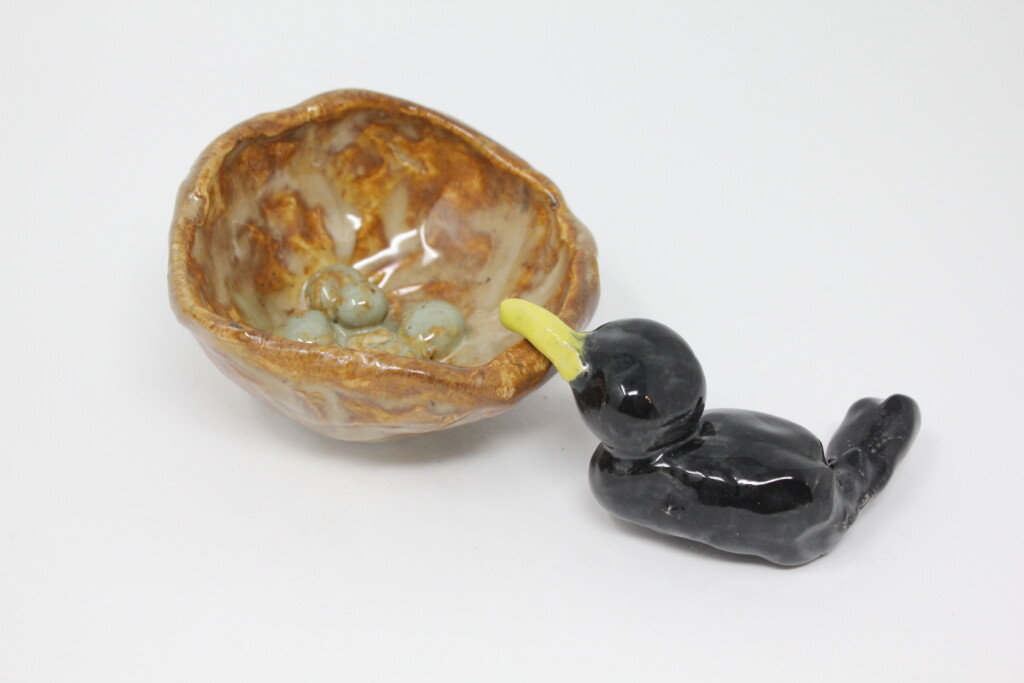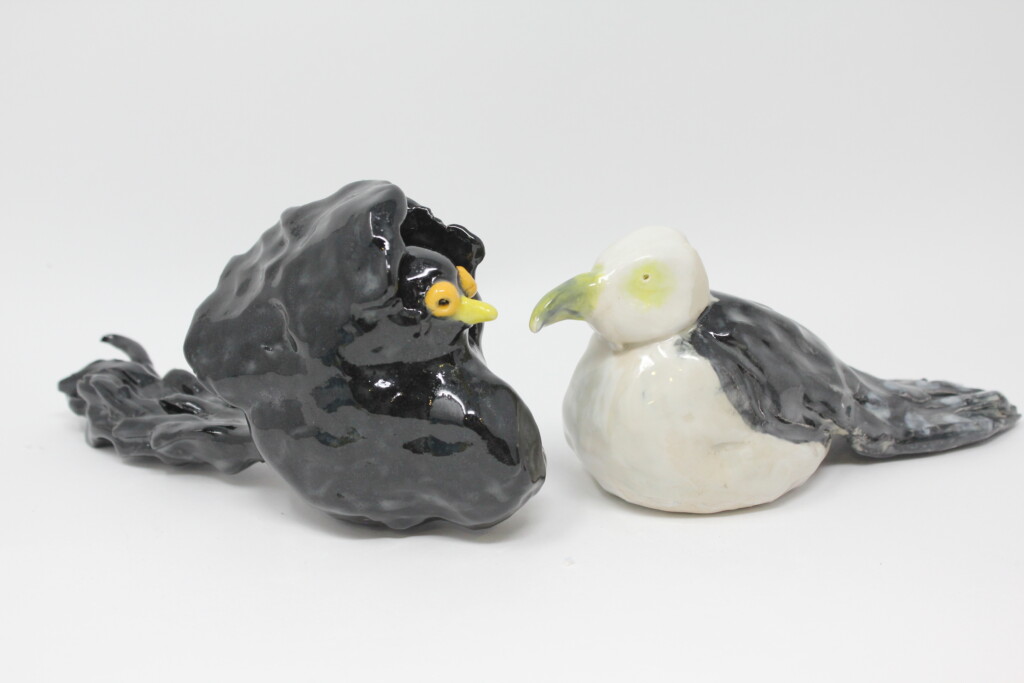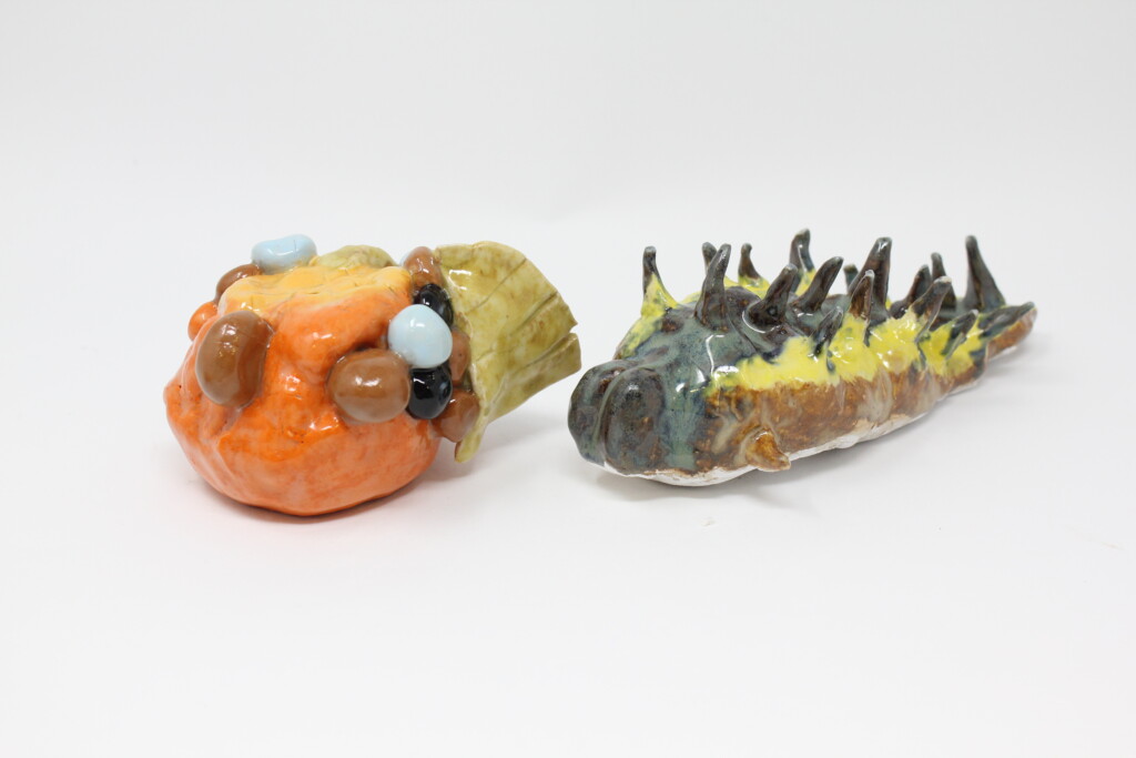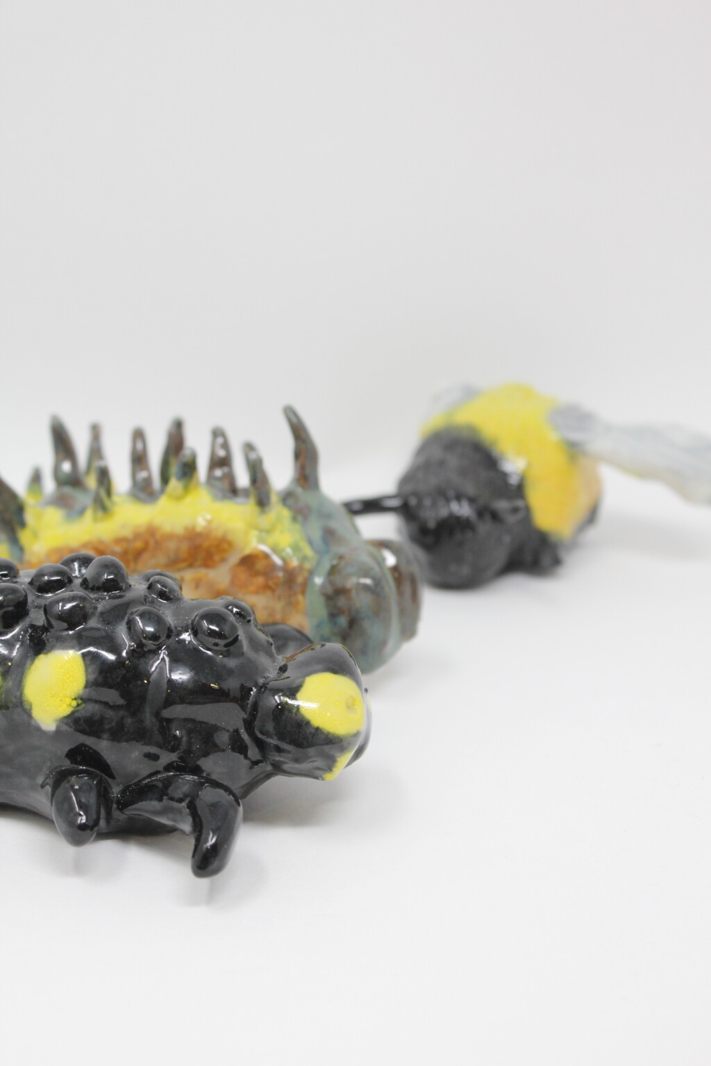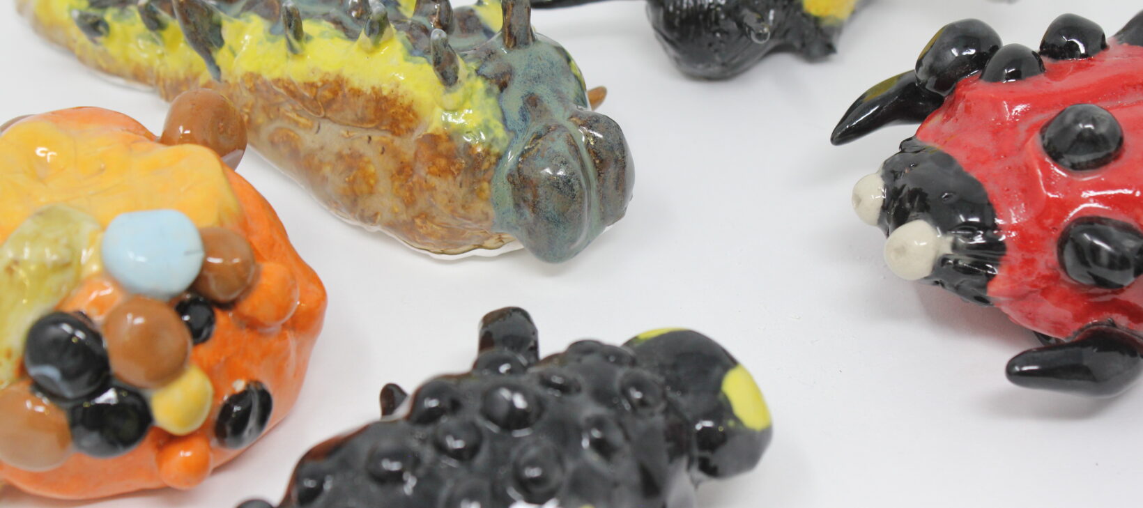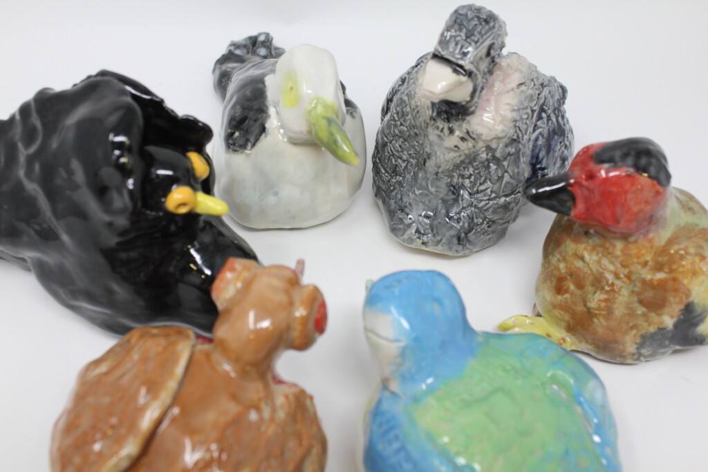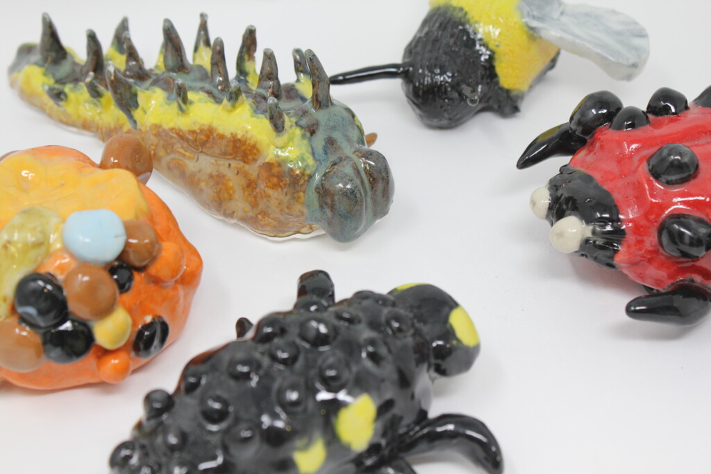 The works in the exhibition depict commonly observed birds and insects found in the Bluecoat garden. In collaboration with ceramic artist Olivia Rowan from local studio Clay Workshop, the artists created 3D sculptures using recycled clay. Observational drawings of flora and fauna have been collaged into screen printed collaborative works created in the Bluecoat Print Studio.