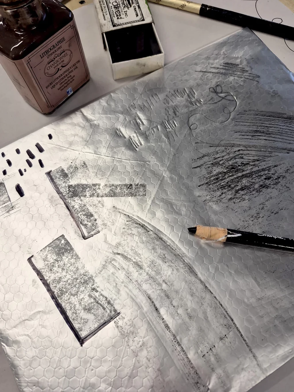 Kitchen Lithography utilises equivalent chemical processes and preparation, but uses readily available household materials to make a simple and accessible introduction into Lithography.