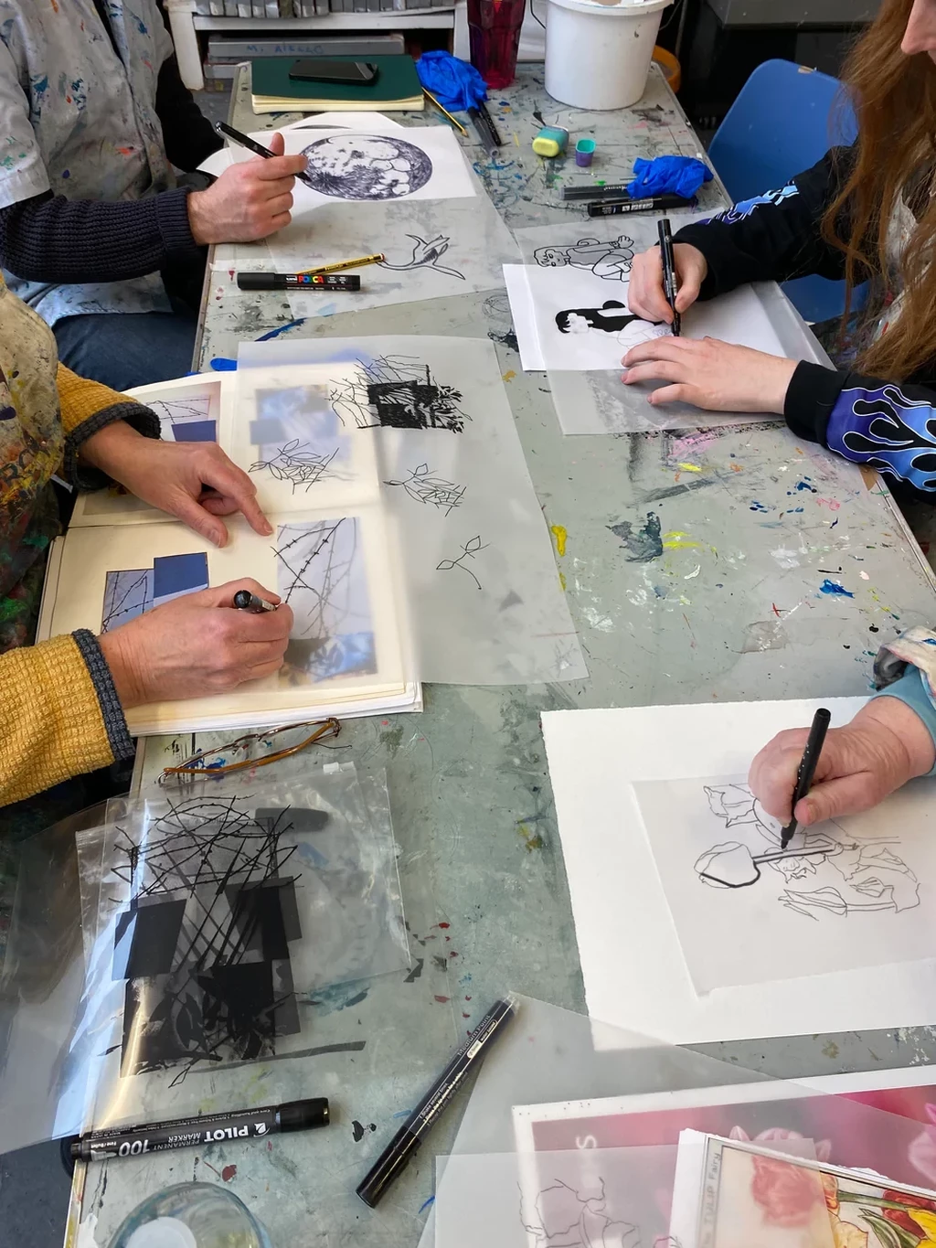 Afternoon Session: After creating your hand-drawn design, you'll expose it onto a screen. You'll be shown a short demo on screen printing, including some experimental screen techniques to add colour to your prints. You'll finish the workshop by using our screen-beds to print your artwork onto paper.